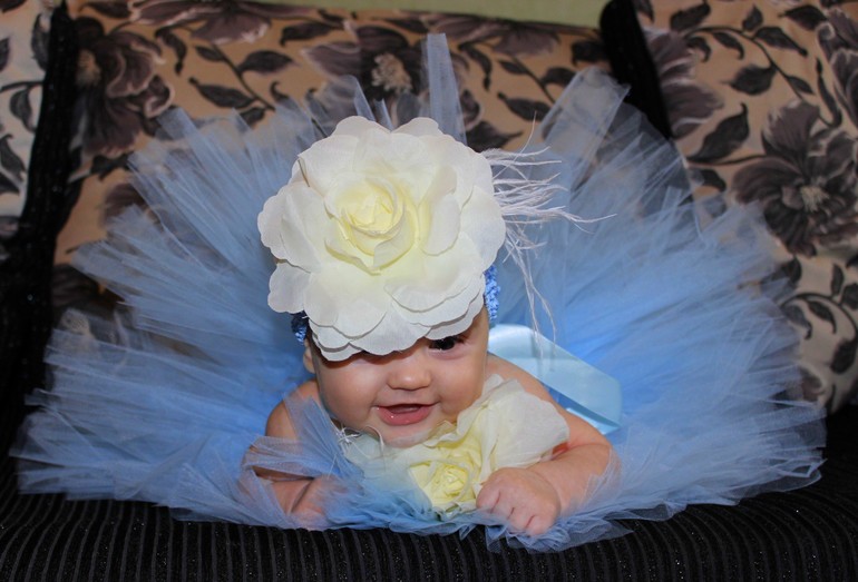 А это платье заказала на 6 месяцев Лизе, но не удержалась пофотала ее, сидеть еще не умеет, ну хоть так. Красивое, но не удобное, только пофотаться.