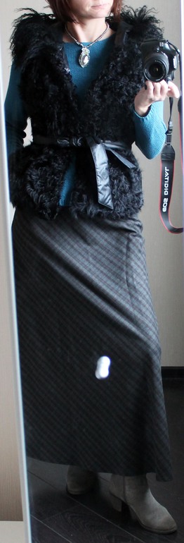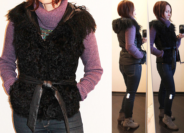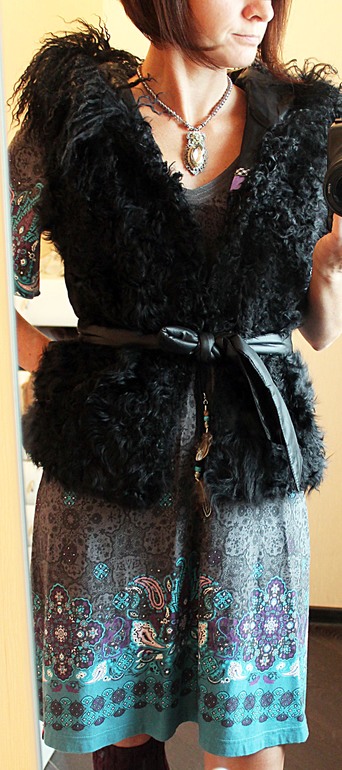 Ну и жилеткой хвастану. Давно хотела жилет. Но на натуральный денег жалко, а искусственный не нравится. А тут за 3000 (начальная цена 11000), каракуль. И сидит отлично. И даже муж оказывается вкурсе, что каракуль нынче в моде. Или это козлик у меня? Не важно в общем. Мне нравится. )))