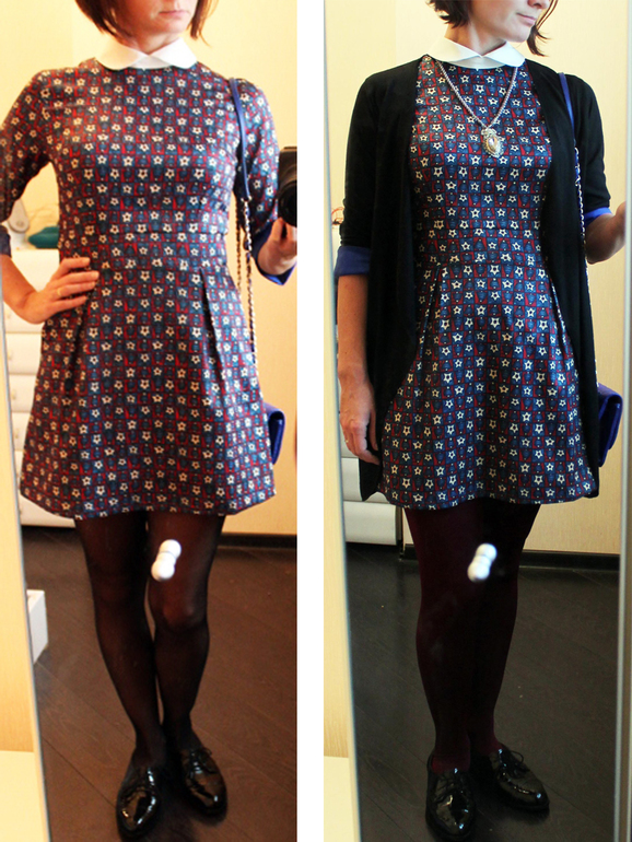 Образ с рубашкой шикарен)))Первое платье мне нравится очень, такое прям клевое. Можно его обыгрывать по-разному…А вот второе… Меня тут смущает не длина платья, а все вместе: длина платья, длина рукава и воротничок))) ощущение от воротничка сразу такой школьницы, а когда 2 укороченных элемента, то ощущение, что выросла за лето, а форму не поменяла. По пропорциям хочется вытянуть немного — попробуй может на запястье что-то добавить, можно часы на ремешке, и повесить удлиненное колье или цепь, чтобы создать диагонали. Может скорректирует это впечатление, потому как платье и образ в целом очень даже ничего))) хотя почему-то не уверена, что он твой по психотипу)))) скорее если и наденешь, то один-два раза.