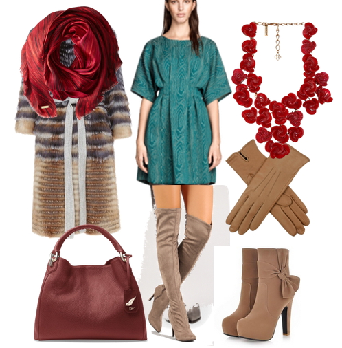Я адаптировала под наши нужды, палитру, тип фигуры. Здесь так же расстояние между платьем и сапогами будет минимально. Ботильоны с платьями я не очень люблю, но сделала,на тот случай, если все таки будет проблема с сапогами