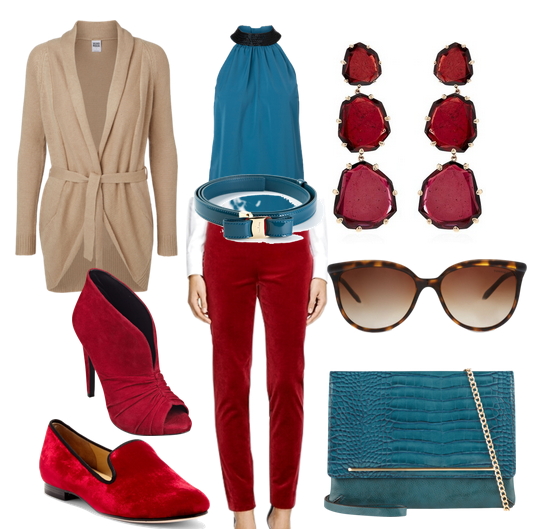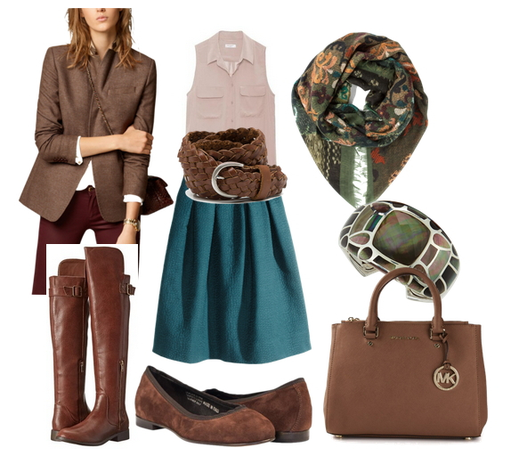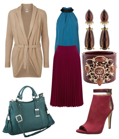 Ну и смотрим по трендам- это кейп, английский тартан, глубокие цвета бархата, и аквамарин в блузке и юбке (цвет сезона), плиссировка сейчас в моде именно в длине миди и мини.