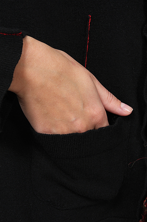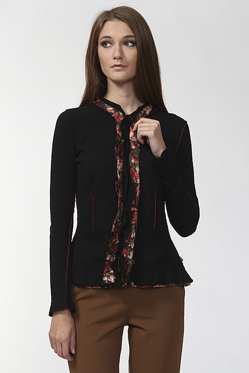 ПосоветуйтеДевочки, есть такой вот жакет Just Cavalli. Фасон мне нравится, но меня смущает, что он, судя по фото, по-видимому сделан из ткани как обычные кофточки, т.е. не толстый трикотаж (cм. фото 2 и 3). Как считаете, в носке будет выглядеть плохо, вытянется? Все-таки мне кажется, подобный фасон предполагает более плотную ткань. Как думаете?