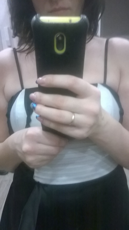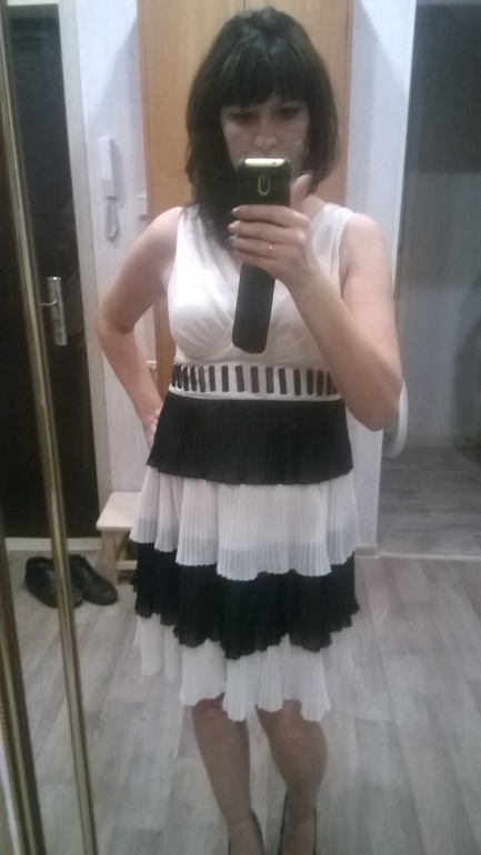 В первом варианте кажусь себе толстой -так было изначально-, во втором смущает нависшая над корсетом кожа подмышек -на самом последнем фото вроде видно-
