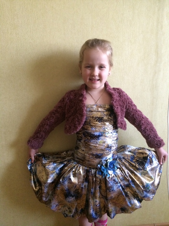 Детская модаДочь поет в ансамбле на концерте будет в этом платье , но зал не отапливается по- этому выбираем кофточку