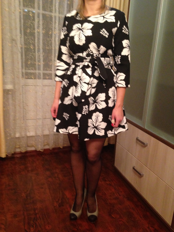 Мне кажется такой фасон больше подойдет худеньким с не большой грудью. Да и большие белые цветы ещё больше полнят вас.