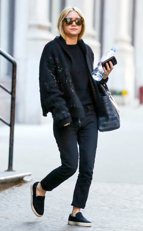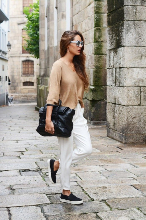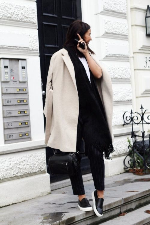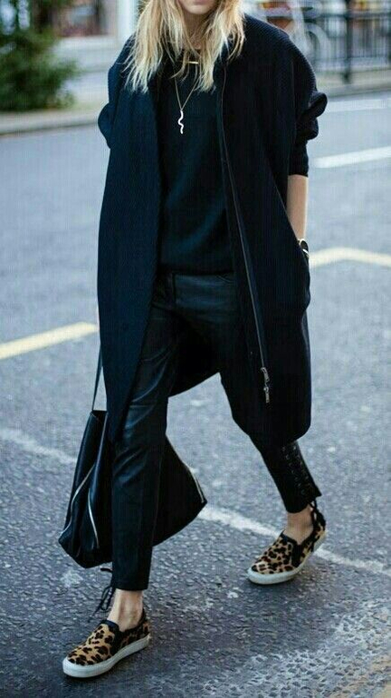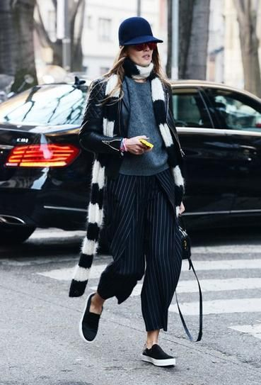Расцветка слипонов довольно разнообразна, но наиболее расхожими стали черного и серого цвета . Обе пары отлично сочетаются практически с любыми цветовыми комбинациями и не зря заслужили всеобщую любовь. Их носят с узкими черными джинсами, с бойфрендами, брюками разного фасона, дополняют образ пальто в стиле оверсайз или прямой класикой в комплекте со стильной шапкой или шляпой. Как видите, слипоны неприхотливы и подходят практически под любую одежду.