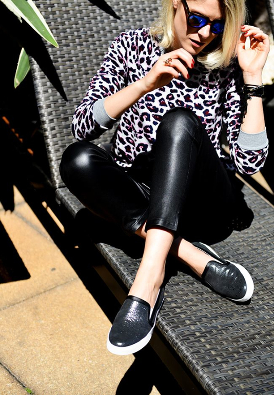 Но, серьезные конкуренты однотонным слипонам, стали модели с лепардовым и змеиным принтами. Они не менее универсальны для составления комплектов на каждый день.