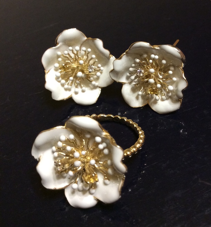 Но сегодня, совершенно не планируя, просто прошлась по своим любимым магазинм с ювелиркой. И ушла уже с покупочкой! Хотя себя планировала радовать совсем другим колечком. Теперь надеюсь, что то колечко меня дождется несколько месяцев. А ниже фото моей красоты!!! Хотя я ношу белое золото. Этот комплект буду теперь иногда носить, хоть он и из желтого. И фото на мне)