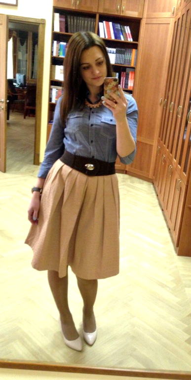 с поясом очень хорошо) это акцент сезона, он претендует на значимую деталь в образе! Белые туфли не из этой компании( А верх к этой юбке есть еще какой-нибудь?