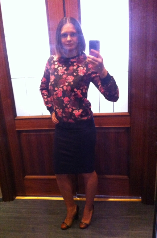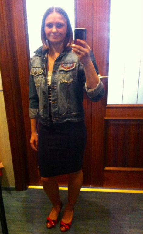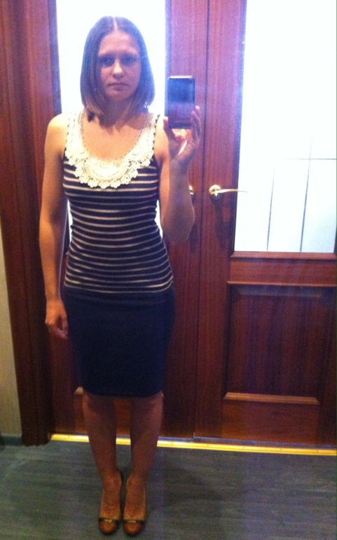И себе юбочку нашла! Темно-синюю трикотажную.
