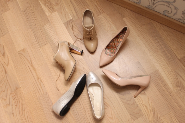 ОбувьВ мой гардероб возвращаются каблуки!!!! Ура!!! Ура!!! Товарищи!!! Вчера прикупила две пары (нюдовые искала уже год, нужного оттенка и полноты). И золотые балетки ( универсальный цвет). Под катом фото