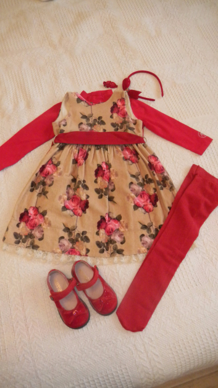 А под моннализу в случае если с красными колготочками, туфельками и лонгом я бы надела красное платье однотонное, котельного плана и возможно подобрать к нему цветочное украшение в тон к платью, кстати на сайте, что в личку скинула можно поискать