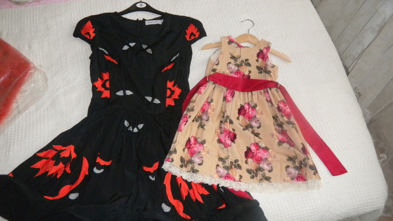 Хорошо по моему мнению платье детское с лепестками и взрослое шишифоновое с серебр.пояском. Оба нежные.