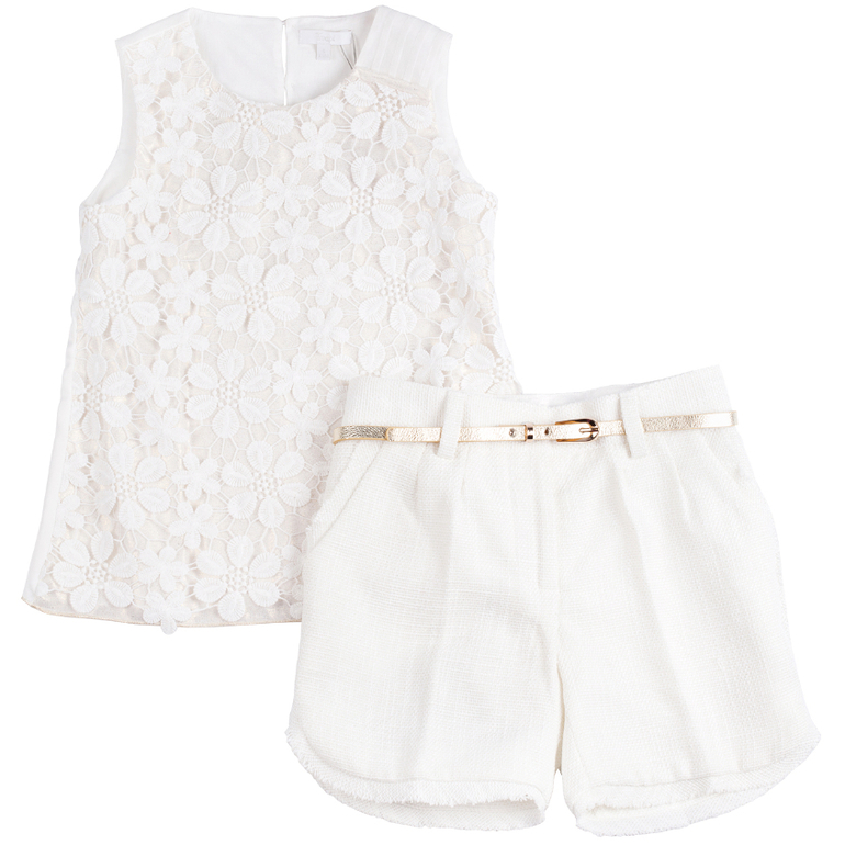Вот, к примеру, сет для девочки топ и шорты и пояс в комплект.