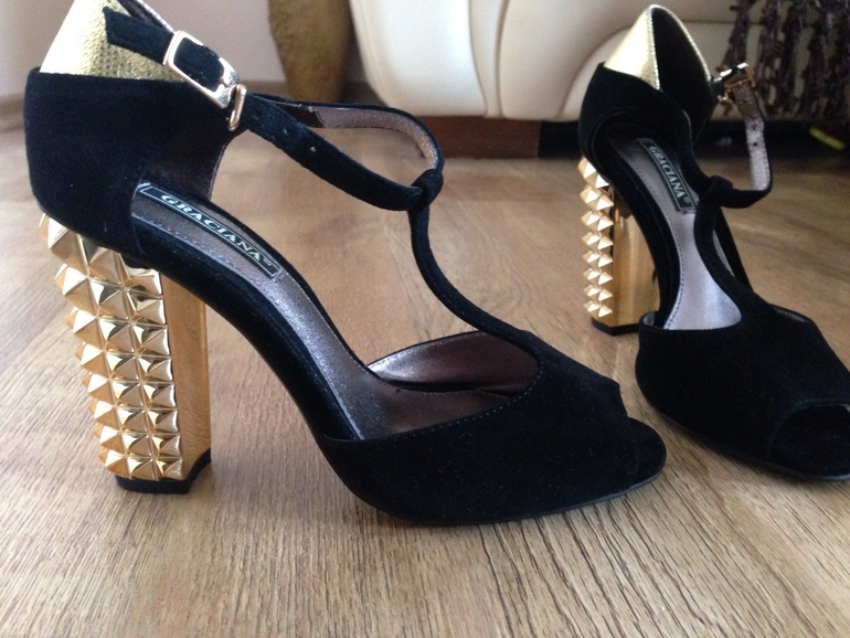 Туфли парадно-выходные, к ним черное платье (желательно обычного кроя, не перегруженное деталями и т.д.) или комбез (черный), или черные брюки и белую рубашку/блузу (последние простого кроя, без воланов и бантов, например). Сумку/клатч - маленькая сумочка или клатч. Черную лучше, можно с золотой фурнитурой. 1й клачтч тоже подойдет. Тут главный принцып - одна главная вещь, в данном случае это туфли, остальное, простые формы и т.д.