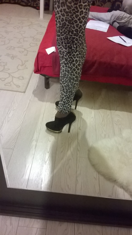 А может не надо их одевать? Туфельки клевые, ноги красивые. Но леаперд(((( совсем не красит их.