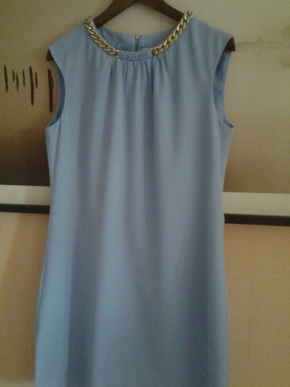 Вот,была у меня мысля по поводу косухи,но смущает то, что платье в стиле"английский завтрак",да и туфли на каблуке бежевые.А тренч беж.не будет сливаться с нежно голубым.(специально сфоткала с бежевым фоном стен), не простовато будет?