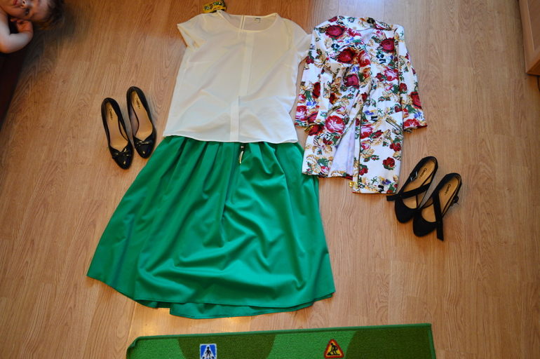 короче вот мой наряд туфли без ремешка были на прогулке а с ремешком в кафе, на солнечном свету она реально сливается с травой(юбка)
