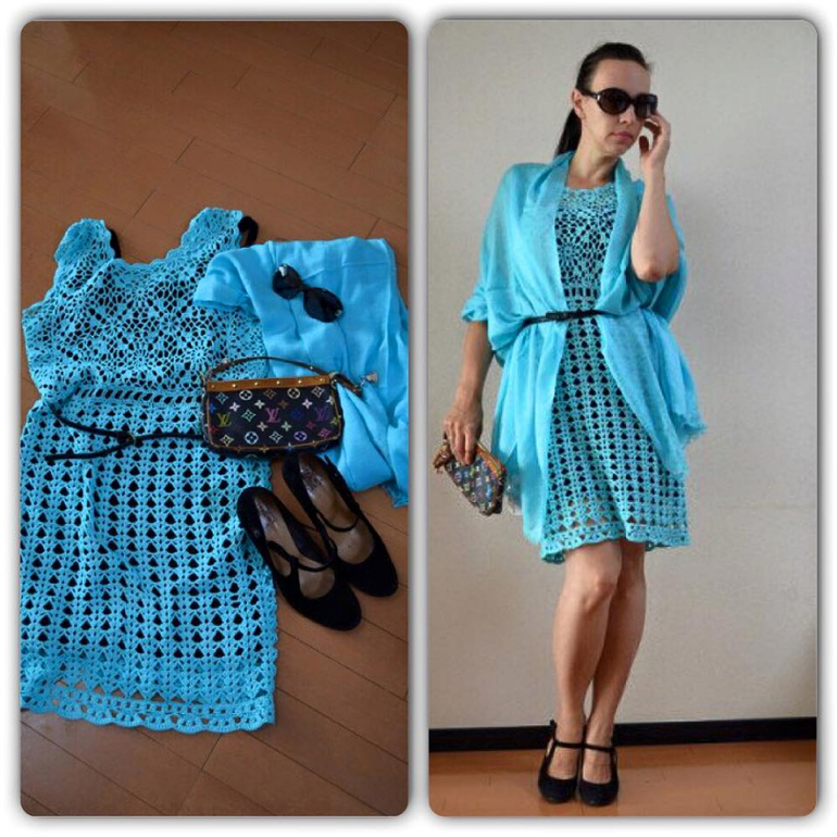 у меня тоже есть несколько платьев таких, когда вязала, думала, прям красота , буду носить, но все как-то неуместны получились... так и лежат в шкафу, хотя, на пляж как-то надевала)