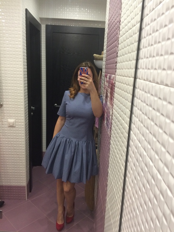 Реально нет)) обхват под грудью 75, а талия 70-72))) и она у меня высоко, поэтому большинство платьев с поясом на талии и пышной юбкой сидят странно: большая грудь, пояс — и сразу юбка)) бывают, конечно, удачные модели, но их так мало встречается... А это платье надела — и появилась талия, и даже намек на бедра))) при этом, ноги оно не укорачивает, на фото может так казаться, так как снято сверху вниз))) Я в нем какая-то... Равновесная
