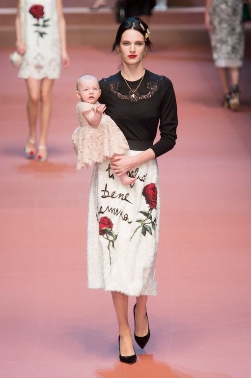 Они идут со своими детьми и беременные даж там есть) дольче и габбана делают крутые детские вещи- почему бы по подиуму не пройти с детками? Или они должны ползти как улитки по нему вразброс?😂 в Италии сильны семейные ценности независимо от этого показа)