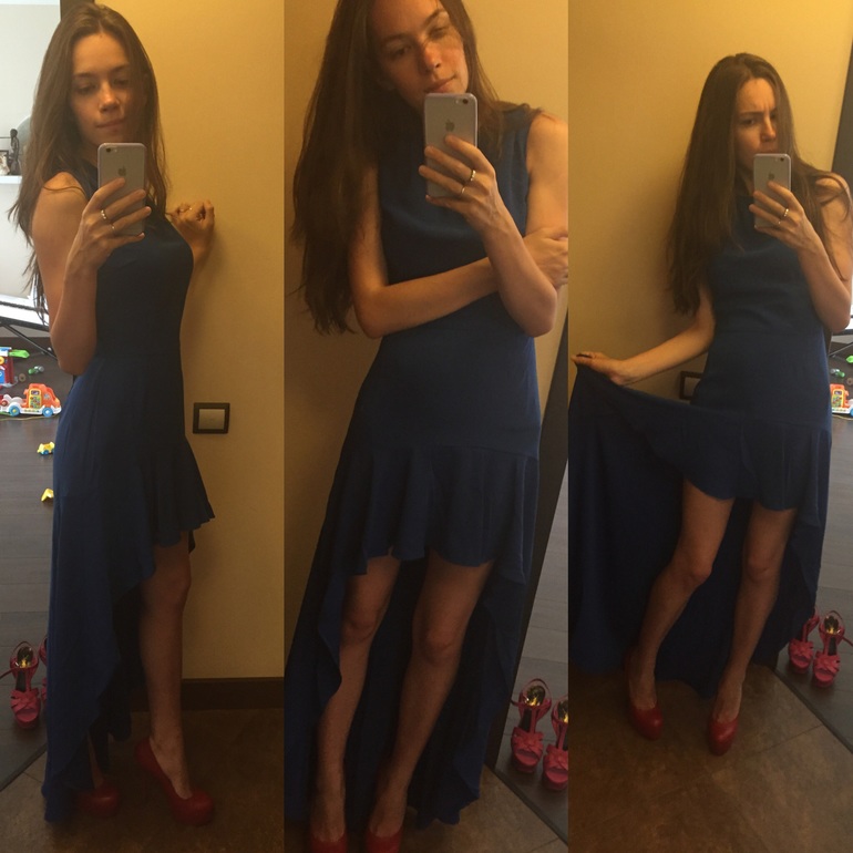 Проголосовала за "Не надо": Хвост мне не нравится, потому что он какой-то недоделанный, не придает воздушности, низ получается сильно облегающим и плечи из-за этого кажутся больше. Надо другое с хвостом платье искать, это вас не красит. Ножки у вас очень хорошенькие