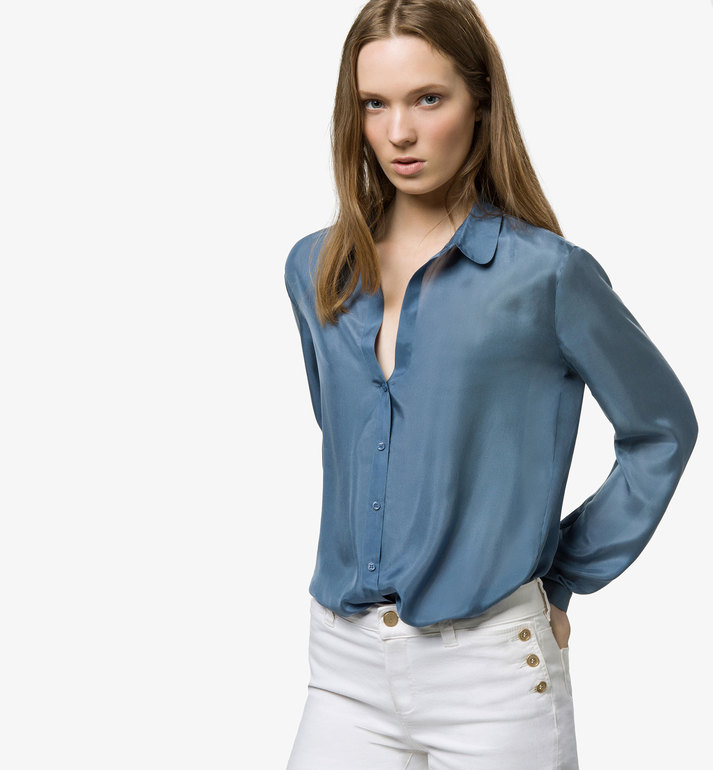 А еще блузка из 100% шелка. Очень тонкая и нежная. Цвет мой любимый. Как холодный дождь. ) Эта картинка из новой коллекции. У меня пуговицы до верха. Но цвет и ткань такие же.