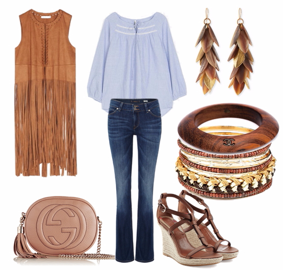 и вот опять же — колье во время носки то вылезает на блузку, то обратно, я уже пробовала одеть его с этой блузкой, получается неудобно. Тут у меня блузка длинная, поэтому ее я ношу на выпуск, в заправленном виде собирается в области живота и получается объем.
