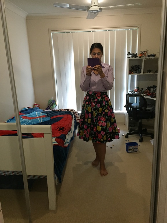 Юбка красивая! Футболка мне вообще не нравится с этой юбкой. Блузка неплохо, но хочется либо закатать рукава, либо блузку "полегче"