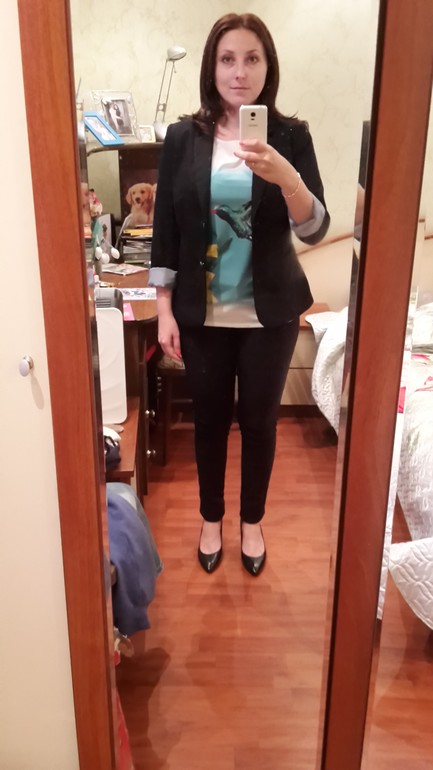 Первое фото из добавленных: майка эта Вам не идет, она подростковая и Вас простит. Ее Вам можно только на дачу ну или спортивный вариант для прогулки с кроссовками и джинсами. 2. То же самое. 3. С этими босоножками намного лучше! Майка не в тему. 4,5 фото: очень хорошо! И рукав можно как застёгнутый носить, так и завернуть по локоть, как у вас это сделано на левой руке. Цвета очень здорово сочетаются, образ получился такой легкий, свежий! 6 фото: черный пиджак утяжелил цветовую гамму. Без него лучше. 8 фото: Платье здоровское, прям Ваше, очень хорошо сидит и в таком варианте вполне можно носить. Только нужно добавить каких-нибудь ярких и свежих красок в виде аксессуаров на руки и шею (легкого шарфика и/или браслета и т.д.). 7 фото: к образу, который был на 8 фото вполне можно добавить пиджак, накинуть его, но носить его не застёгнутым, просто как временный вариант что ли... Не знаю как правильно объяснить. 9 фото то же самое, что и 6 10 фото . Вы знаете, не нравится мне эта блуза/футболка. Возможно, в реальности она выглядит иначе и я бы ее заценила как Вы. НО в этом образе она очень здорово заиграла. Такой белый холст с акварелью! Босоножки, возможно обыграть как-то сумкой или браслетом. 11, 12, 13 фото. Туфли и пиджак очень строгие, не вяжутся с таким ярким принтом футболки. Сюда бы больше подошла блуза из первого блока фотографий, та что с кружевом. 14 фото. С мокасинами плохо... Ох, я Вам тут написала, прям Эвелина Хромченко выискалась )))) Честно, я совсем не стилист, мне бы самой его помощь пригодилась. Просто очень хочется помочь Вам. Это мое видение Вас!