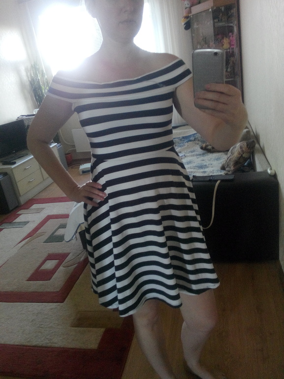 Первое платье очень красивое и вам идет! Белое не понравилось, как будто платье дочки надели.. Слишком короткое, верх несуразный какой-то.. Согласна с комментом ниже про фартук от школьной формы. Полосатое тоже вас не украшает.. Вы в нем массивная. Купальник красивый!