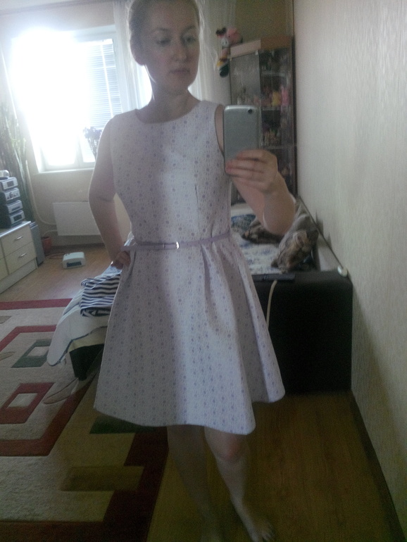 Одежда1. Платье для работы. Плотное достаточно, хорошо держит форму. Цвет нежно сиреневый