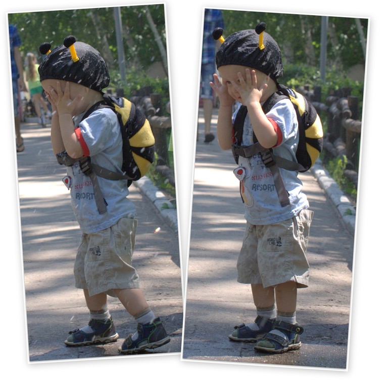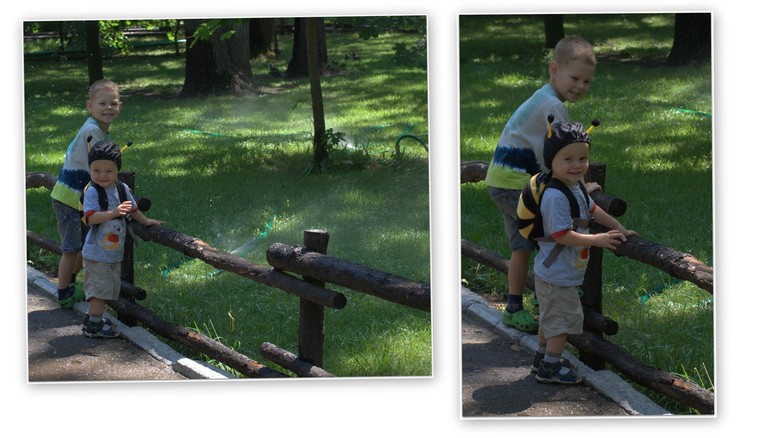 В парке было невообразимо жарко, а потому мои мальчишки «прилипли» к забору, за которым работала поливалка с живой водой. Я и сама не удержалась и встала в зону «обстрела», конкурс мокрых маек плакал по моему участию.