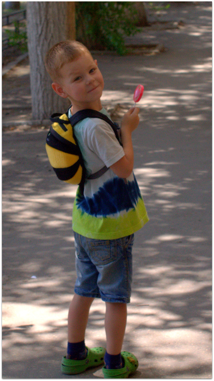Да-да, я знаю, о чем вы подумали. О телефонах. Об этом подумал каждый встреченный нами человек в парке, а один даже поинтересовался, за какие такие заслуги и в каком офисе "Пчелайн" рюкзачки выдают. Бесплатно. Ха-ха. Пришлось пояснять, что фирма Little Life вряд ли желала сделать рекламу оператору сотовой связи, а может, сотрудники Литл Лайф просто обожают болтать по телефону?! и все совпадения случайны. Ну правда же.