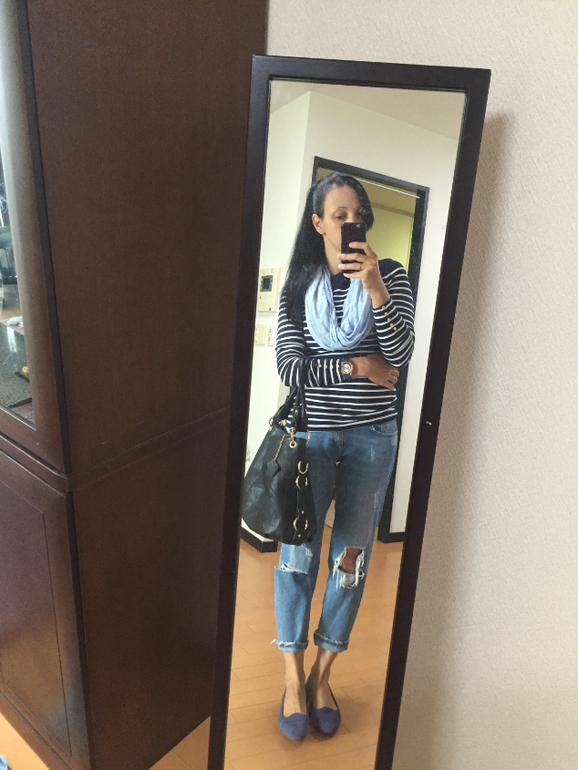Люблю тельняшки! Отличный лук! Я бы еще поэкспериментировала с яркой сумкой! Лето я смотрю у вас там не жаркое, да и у нас какоето лето не лето в россии((