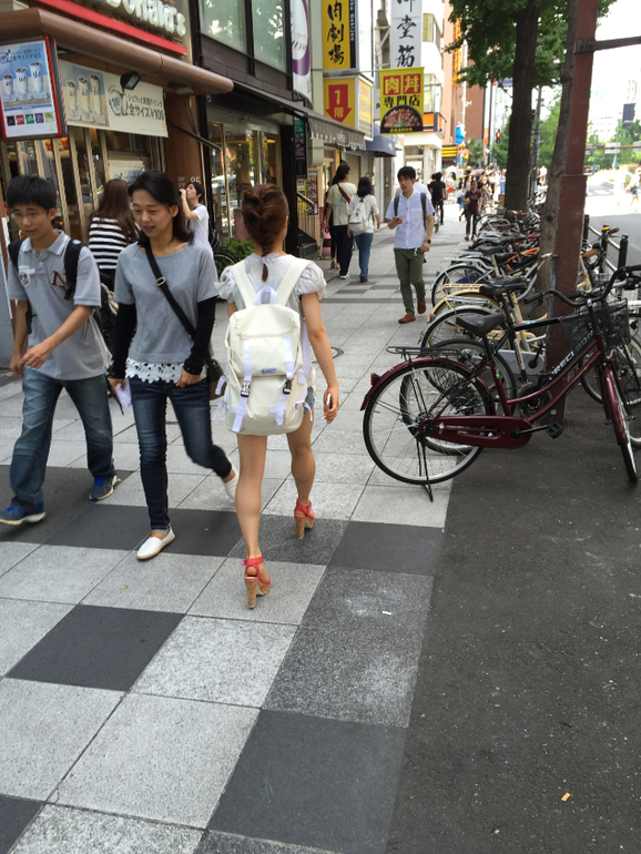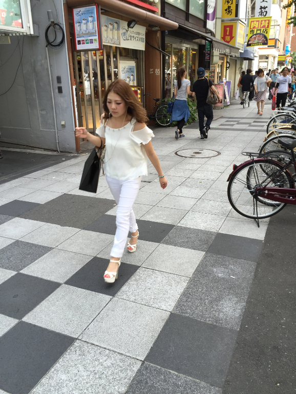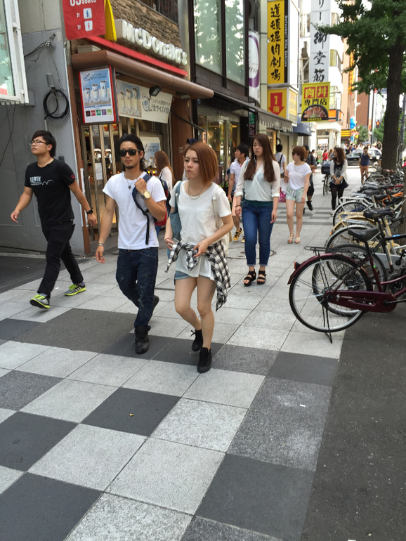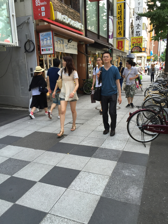 тут в основном китайцы, вот первая девушка японка. Я еще буду снимать, у нас очень много стильных японок, просто стиль наш, японский. Он отличается от России.
