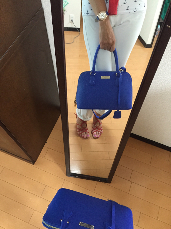 Лена, а на мой взгляд синяя сумка ни по форме ни по цвету к этому комплекту не подходит. Сумка такой строгой формы больше для офиса подходит
