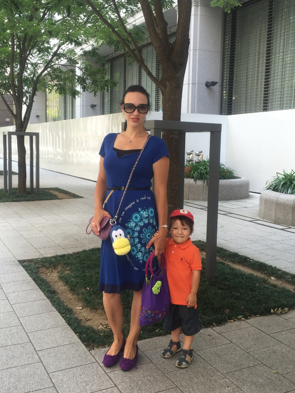 На прогулкеу нас жара, уже есть жертвы, это случается каждое лето. под 40 градусов, но ощущается больше 40, как пишет мне айфон. Я жару переношу легко, поэтому не страдаю. Подо все под низ одеваю майки из юникло, они хорошо впитывают пот, который просто струится по спине, и не дают ему пропитать верхнюю одежду.