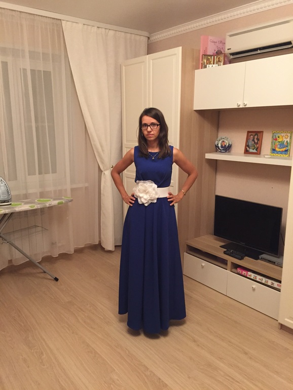 Снимите эту жуткую розочку и покажитесь пожалуйста без неё.А так очень красивое платье и белый пояс к месту.