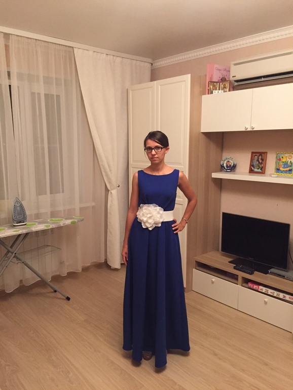 Изначально к платью идет пояс-лента в цвет платья(последнее фото более точно передает цвет), но с ним мне показалось скучновато. Как вам с цветком? И как лучше распущеные локоны и высокая прическа? Если высокая то длинные серьги, а какие? Белые? Синие? Браслет на руку нужен? Еще какие то украшения?