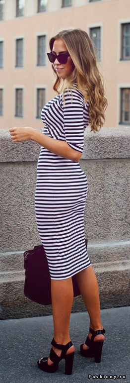 Мне кажется, можно дополнить ремнем по бедрам и сумкой активного цвета. С бело-синей полоской сочетается огромное количество цветов - красный, горчичный, желтый, зеленый, бирюзовый - первое, что приходит на ум. Бижутерия тоже будет уместна.