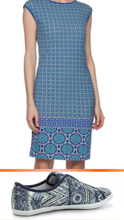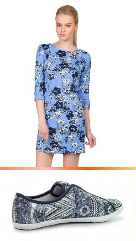 Я бы такую цветную обувь с принтованным платьем не одела, но это я, а вот забубенный стилист разрешил бы))