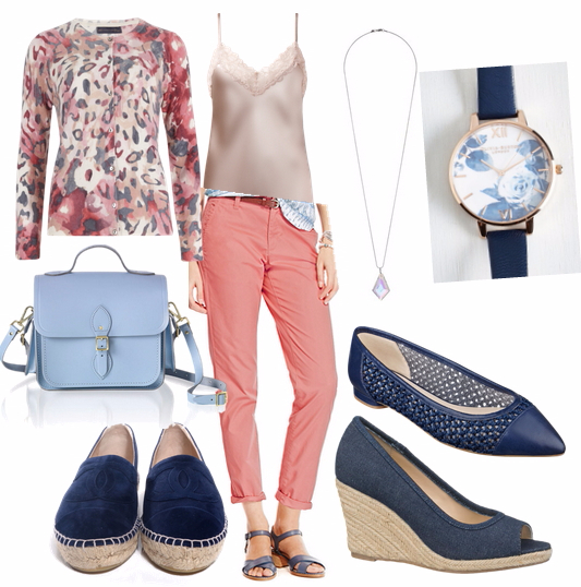 Девушка цветотипа светлая весна, очень нежная, интеллигентная, скромная. Поэтому и образы для нее я создавала такие же. Основная цветовая гамма- светлые, разбеленные цвета, даже принты в тканях у нас очень политкорректные, у меня получилось найти нежный леопард)))