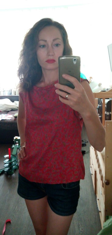 Это тоже шелк, очень нежнейший и воздушный. Получилась блузка. А было это старой маминой громадной юбкой, богзнаетсколько провалявшейся в шкафу, лет 20 наверное.