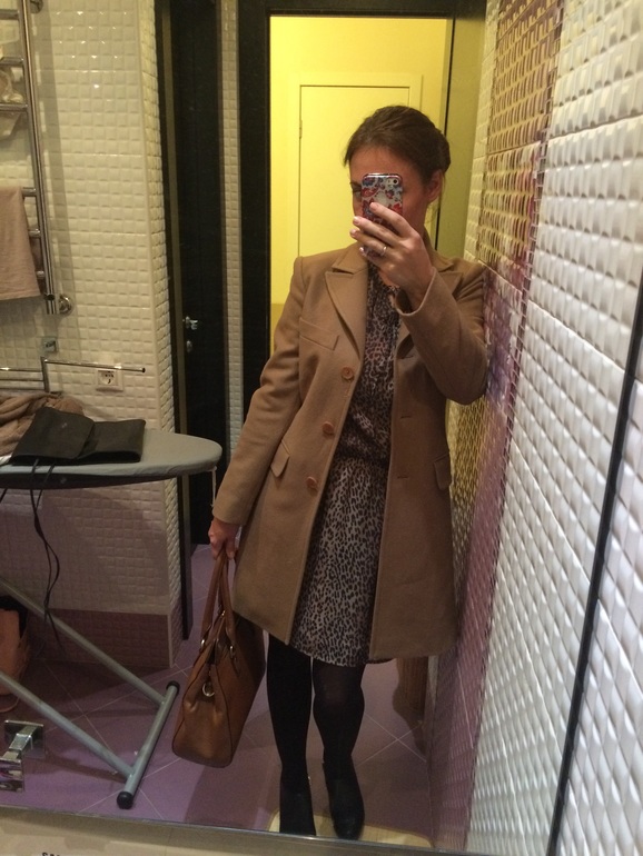 Я ношу с плотными колготками черными, бежевым пальто, черными ботильонами и коричневой сумкой. Вот так выглядит. На мой взгляд, не вульгарно. Принт этот очень люблю!