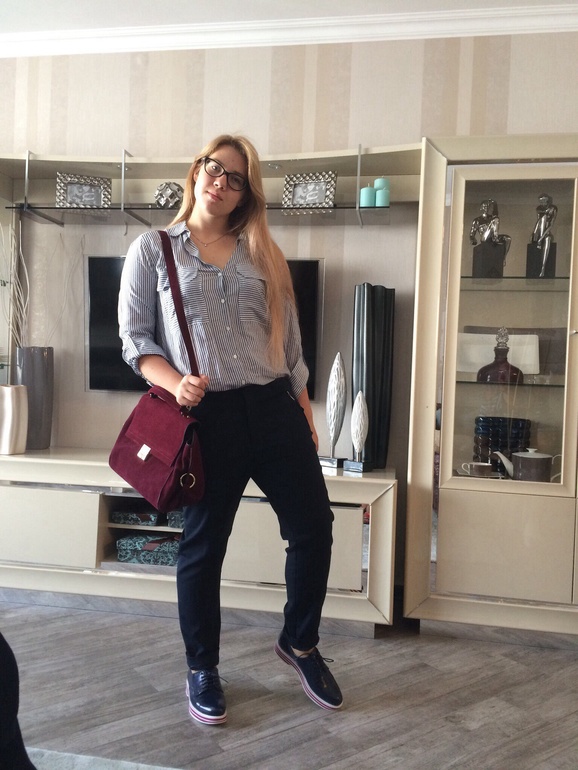 ПыПыСы А вот фотографии доченьки еще одной клиенткиЮлии, которая меня восхитила, как мама. Сначала она заказала консультацию для дочери и только потом для себя и приложила все усилия,чтобы собрать дочь в школу. Меня просто восхитило такое отношение. Прям перед 1 сентября дочка повредила ногу и они не могли выбраться в магазины и Юлия, совершала заказы по интернету, находила аналоги, чтоб только все было готово. Проблема была в том, что школа элитная с дресс-кодом, только определенные цвета, целомудренные юбки, никаких принтов,светлый верх-темный низ и тп. Но в тоже время дочь, как любая старшеклассница хотела быть модной и стильно. Все осложнялось не большими проблемами с весом, которые вы сейчас не увидите)))) и типом фигуры "перевернутый треугольник"