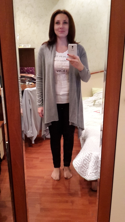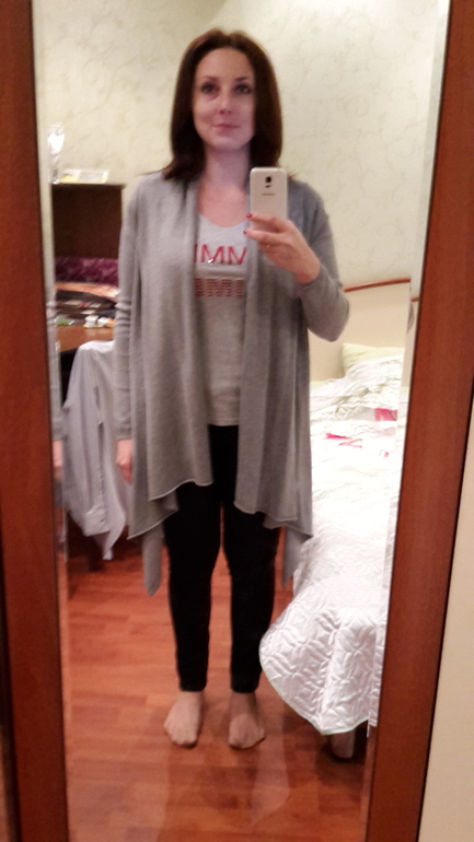 Не знаю насчет кардигана. Футболки эти точно нет. Вы тут самая хорошенькая, из всех фото что нам выставляли. Улыбка, и лицо живое!