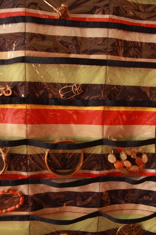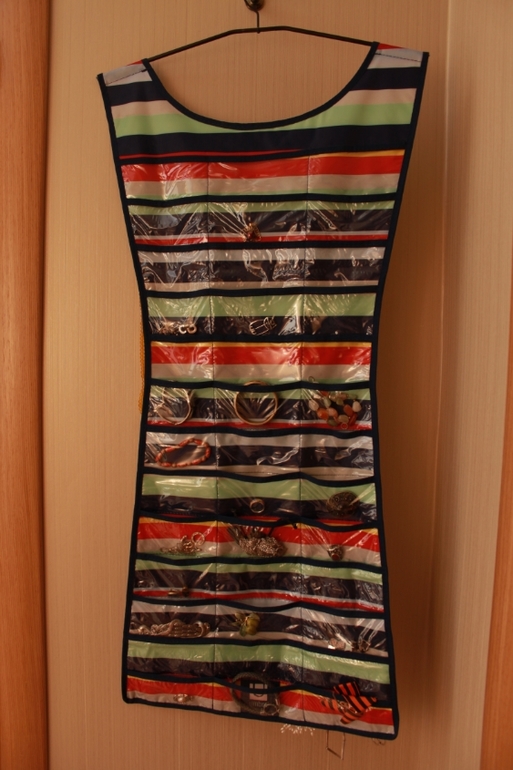 И там же купила органайзер для крупной бижутерии. Идея проста (кто-то может и сам в жизнь воплотит). Липучки для колье и кармашки для всего остального.