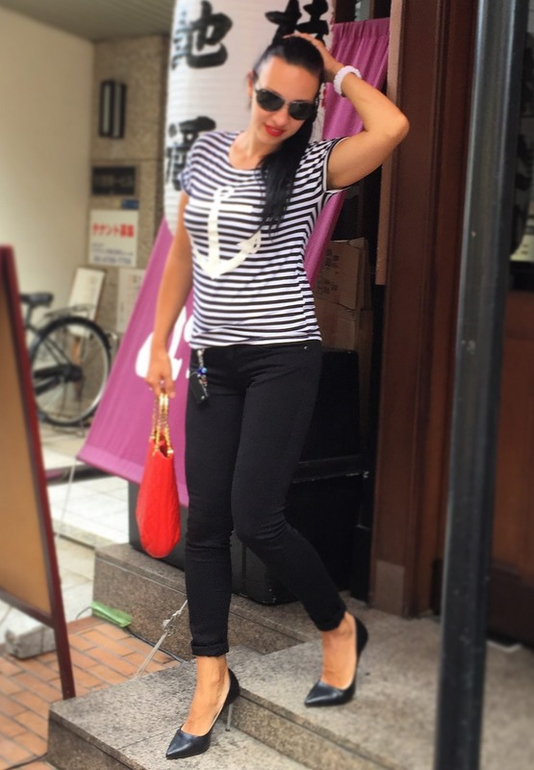 Такая тут стройняшка!!!) Не подумала бы, что футболку и шпильки можно сочетать ))
