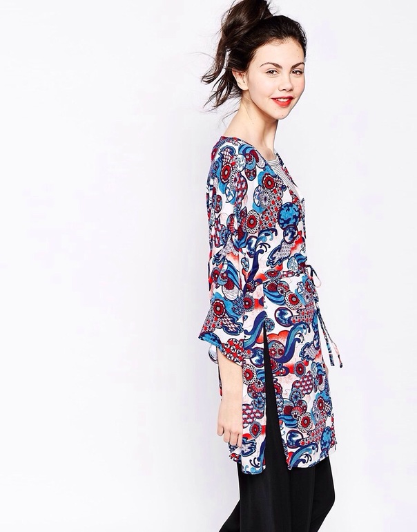 Если юбка длинная есть и с широким поясом, то можно играть, иногда заправлять низ кимоно под юбку, тогда яркого акцента сверху будет меньше и будет выглядеть, как просто яркая блуза :)